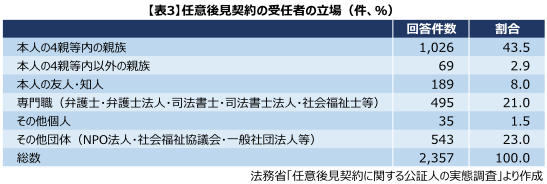 受任者がどのような立場なのかをまとめると、表3のとおりです。